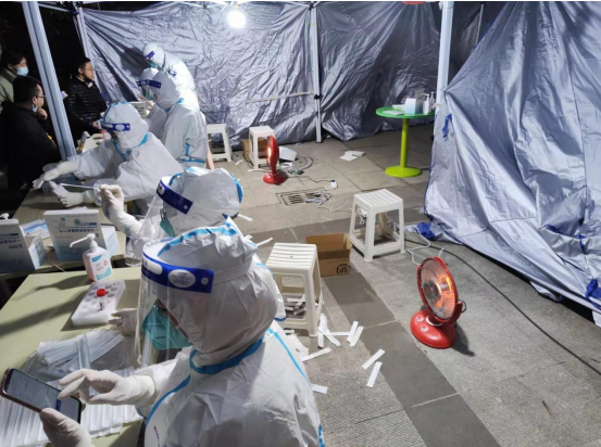 晚間天氣轉(zhuǎn)涼,考慮到醫(yī)護(hù)人員衣著單薄,秣陵街道蔡書記第一時(shí)間想辦法,為醫(yī)護(hù)人員送來棉衣和取暖設(shè)備,并組織志愿者送來一壺壺?zé)崴?,切?shí)解決了醫(yī)護(hù)人員取暖問題。醫(yī)護(hù)人員李同志表示:“雖然天氣寒冷,但是我們醫(yī)護(hù)的每一個(gè)隊(duì)員都感受到了社區(qū)的溫暖,大家既安心又舒心地完成了上級(jí)交付的任務(wù)!”