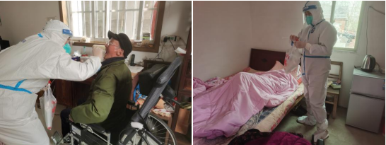 為做到疫情防控全覆蓋,考慮到殘疾人士參加核酸檢測的不便,橫溪街道要求對轄區(qū)每一位殘疾居民提供上門核酸檢測服務(wù)。駐點(diǎn)紅旗村的醫(yī)護(hù)人員在志愿者的帶領(lǐng)下來到殘疾村民家中,為行動(dòng)不便的村民做核酸檢測,醫(yī)護(hù)人員和志愿者在做完檢測之后還仔細(xì)叮囑村民,告訴他們注意安全防護(hù)、勤洗手、保持室內(nèi)通風(fēng)換氣,這一聲聲的問候與關(guān)懷溫暖著每一個(gè)人。