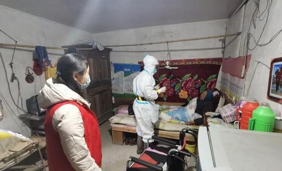 簡單的午飯過后,李凌霞帶著醫(yī)護人員和志愿者們走村入戶,為出行困難的群眾進行核酸采樣服務,并叮囑他們居家生活不可松懈疫情防控,也需做好防控工作。針對勇躍村4戶居家隔離群眾,李凌霞和志愿者們每隔一天就會上門慰問,隔著窗戶送去肉、蔬菜、水果等物資,確保他們有新鮮的食材,都能吃上熱乎飯。