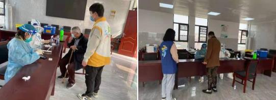 西城村在聯(lián)系好醫(yī)護人員、安排好場地后,網(wǎng)格員在微信群中通知村民們核酸檢測的時間、地點,要求大家?guī)Ш蒙矸葑C或準備好身份碼前往采樣點,戴好口罩,保持一米距離。巾幗志愿者、計生協(xié)志愿者和青年志愿者攜手,助力核酸檢測,為村民測量體溫,安排他們有序排隊,遇到村民有疑問的,為他們答疑解惑??吹揭恍├先送饶_不便,網(wǎng)格員和志愿者也會上前攙扶,為他們提供力所能及的幫助。
