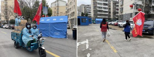 “您好,能幫我買一些水和降壓藥嗎?我家里現(xiàn)在急缺。”接到居民的訴求反饋后,殷巷社區(qū)新時代文明實踐志愿者迅速行動,在最短時間內(nèi)為居民采買好所需物資,并送到居民家門口。“您好,您的物資到了,記得開門拿回去。”由于殷巷新寓小區(qū)樓棟沒有安裝電梯,志愿者們常常要提著一袋又一袋的物資一層一層爬樓梯,每次送完物資,都是一身的汗,“能為群眾服務(wù)我很開心,也覺得很值得,一點也不累。”志愿者們說道。