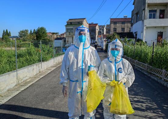 原本負責湖熟街道周崗社區(qū)衛(wèi)生服務(wù)中心辦公室事務(wù)的妻子朱月,在疫情期間又主動請纓參加全員核酸檢測工作??此粕聿膵尚〉闹煸拢亲永飬s透著一股子韌勁兒,種類繁多的核酸檢測物資被她整理的井井有條,自己能搬的絕不麻煩別人。4月3日,由于一個月以來的高強度工作,朱月出現(xiàn)強烈的身體不適,但她依然倔強的回到核酸檢測點位,做好核酸采樣工作。朱月說:“我是一名醫(yī)護人員,疫情當下,沒有退縮的可能,我們要變身身披鎧甲的勇士,沖在最前線。”