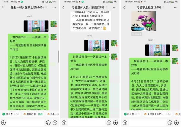 “書籍是人類知識(shí)和文化的載體,是人類智慧的結(jié)晶,讀書是人們獲取知識(shí)和信息的重要手段,是人類吸取精神能量的重要途徑……”在微信群中,社區(qū)工作人員發(fā)布了小視頻,用這種特殊的方式,介紹了世界讀書日的設(shè)立宗旨、發(fā)展歷史、意義等,倡導(dǎo)更多的居民多讀書、讀好書,讓閱讀成為日常生活中的一個(gè)部分。居民們表示,疫情阻止了大家“行萬(wàn)里路”的腳步,但是我們依然可以通過(guò)“讀萬(wàn)卷書”來(lái)增長(zhǎng)見(jiàn)識(shí),拓寬視野,感悟不同的人生。