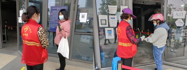 4月21日是向上社區(qū)開展的第十五輪全員核酸檢測工作,面對如此巨大的工作量,僅僅依靠社區(qū)的工作人員是不夠的,于是向上社區(qū)新時代文明實踐站組織志愿者20余人參與疫情防控工作,他們有的在一道門崗提醒居民佩戴口罩、保持兩米距離排隊、出示健康碼、測量體溫,也有的在第二道門崗引導(dǎo)路線,還有的在出口處發(fā)放參與核酸檢測的證明卡片,無論在什么崗位上,大家都默默為阻斷疫情傳播貢獻力量。
