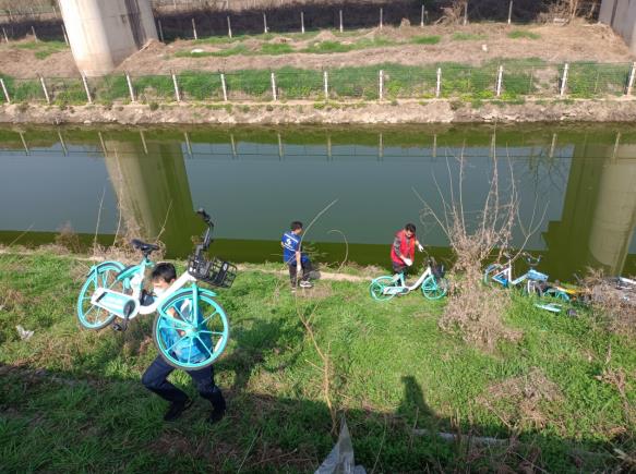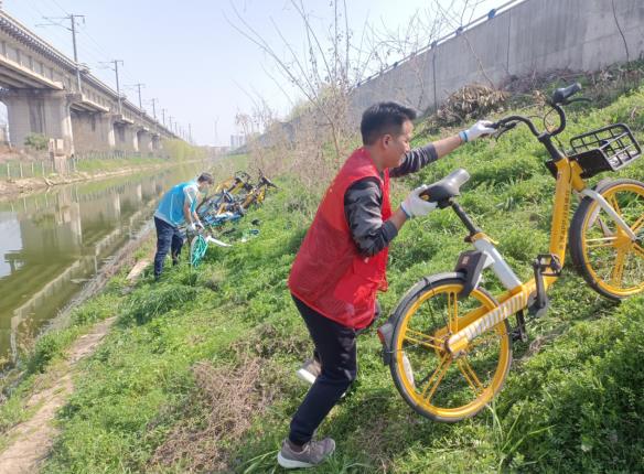 活動現(xiàn)場,志愿者們兵分兩組。一組負(fù)責(zé)清撿河堤沿線垃圾,他們手持夾鉗、垃圾袋,將草叢內(nèi)的泡沫盒、飲料瓶、包裝袋、白色垃圾等一一“收入囊中”;另一組則負(fù)責(zé)清理河岸堆放的共享單車,他們通力協(xié)作,集中清理共享單車20余輛。一個(gè)多小時(shí)的勞動過程中,志愿者們不怕臟、不怕累,樂在其中,充分展示了甘于奉獻(xiàn)、積極向上的精神風(fēng)貌。一番努力下,堤岸環(huán)境變得更加干凈清爽,河岸面貌煥然一新。