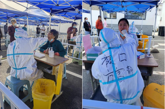 彰顯醫(yī)者本色,筑牢防控屏障。晨光熹微,幾個女孩已經(jīng)開始了一天的工作,驅(qū)車1個多小時,在7點30之前到達(dá)各個點位,為居民進(jìn)行核酸檢測。除了吃飯、去洗手間,幾名女孩從未離開過核酸檢測點位,一天下來,檢測人數(shù)超過1000人。白天悶熱、夜晚寒冷,祿口社區(qū)醫(yī)院的姑娘們要克服的不僅是生理上的壓力,更有精神上的壓力。穿脫防護(hù)服要嚴(yán)格遵循防疫規(guī)定、核酸檢測要全神貫注、常常冷掉的午餐……高強度的工作和精神的高度緊繃常常讓她們累到虛脫。但是,即使面對繁瑣的工作步驟和繁忙的工作任務(wù),祿口社區(qū)醫(yī)院的姑娘們?nèi)匀挥脠猿值囊庵緷u漸克服種種困難,也逐漸找到了更合適的工作節(jié)奏,做好了打持久戰(zhàn)的準(zhǔn)備。