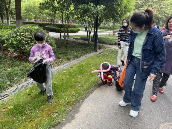 活動(dòng)開始,志愿者向孩子們宣傳了“母親節(jié)”的來歷以及垃圾分類小常識(shí)。緊接著,孩子們戴上一次性手套,拿著黑色垃圾袋,在媽媽們的陪伴下,認(rèn)真細(xì)致的清理小區(qū)綠化帶白色垃圾。
