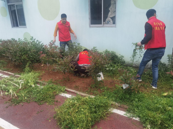 受疫情影響,安靜一個多月的校園雜草生長十分茂盛,不僅影響了校園環(huán)境的美觀,還容易隱藏蚊蟲,對小朋友們的健康造成隱患。黨員志愿者們帶好手套和清理工具,穿梭在校園的綠化帶和花壇,將雜草一點一點清理干凈。