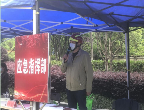 應急救援組立即啟動應急預案,抓緊趕到火災現(xiàn)場;由于火勢較大,搶險救援組分兩路進行救援疏散,并利用消防云梯車深入高層救援將一名受傷人員救出;事故搜救組進入事故現(xiàn)場進行搜救,現(xiàn)場滅火人員開始撤離;警戒疏散組封閉圍擋火災現(xiàn)場及救護區(qū)域,并懸掛警示標牌,引導居民有秩序地向安全區(qū)轉移,在前面疏散的負責人一邊小跑,一邊不停地提醒居民們要注意安全和疏散秩序。在大家有條不紊,互相配合下,火情得到有效控制,作業(yè)人員及樓棟居民快速疏散至安全場所,總指揮宣布演練結束。